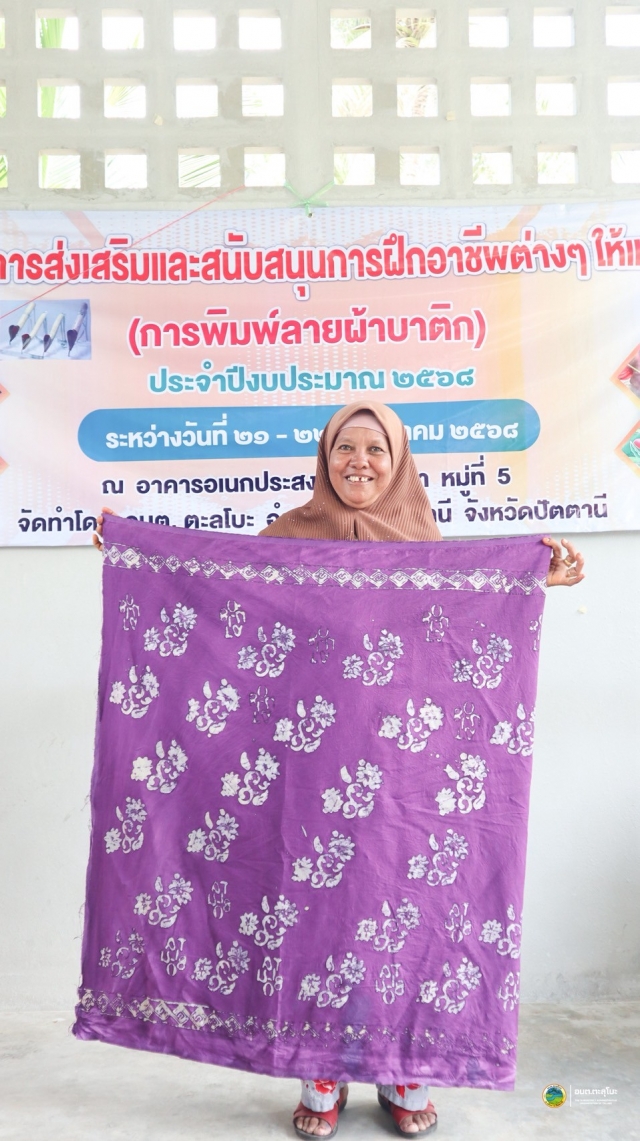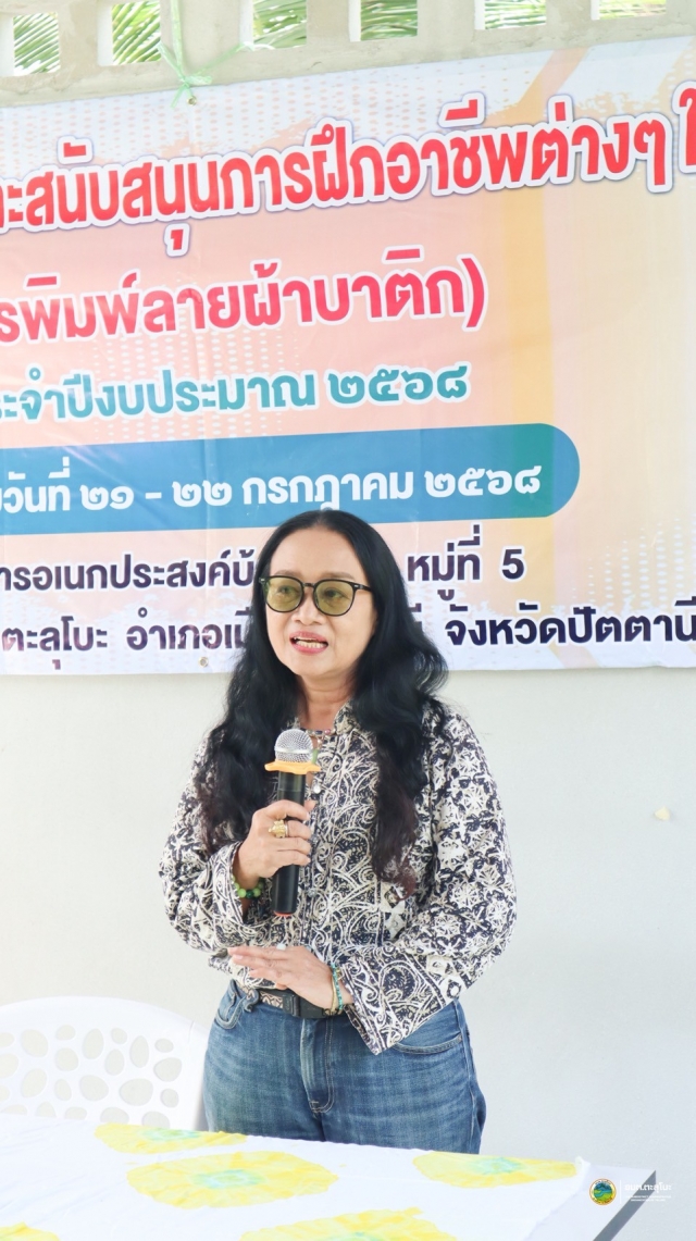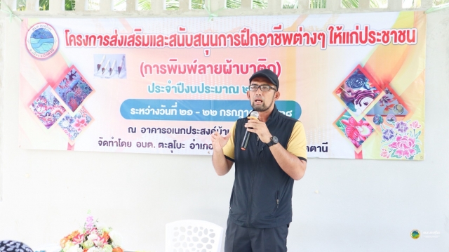 นายเจะอับดุล มูรอหัต นายก อบต.ตะลุโบะ มอบหมายให้นายอัดนาน บากา รองนายก อบต.ตะลุโบะ เป็นประธานในพิธีเปิดโครงการส่งเสริมและสนับสนุนการฝึกอาชีพต่างๆให้แก่ประชาชน (การพิมพ์ลายผ้าบาติก) ประจำปีงบประมาณ 2568 พร้อมด้วยนายมูฮัมมัดซอเร มะยี เลขานายก ฯ ,ปลัด อบต.ตะลุโบะ และ ผู้อำนวยการกองคลัง อบต.ตะลุโบะ